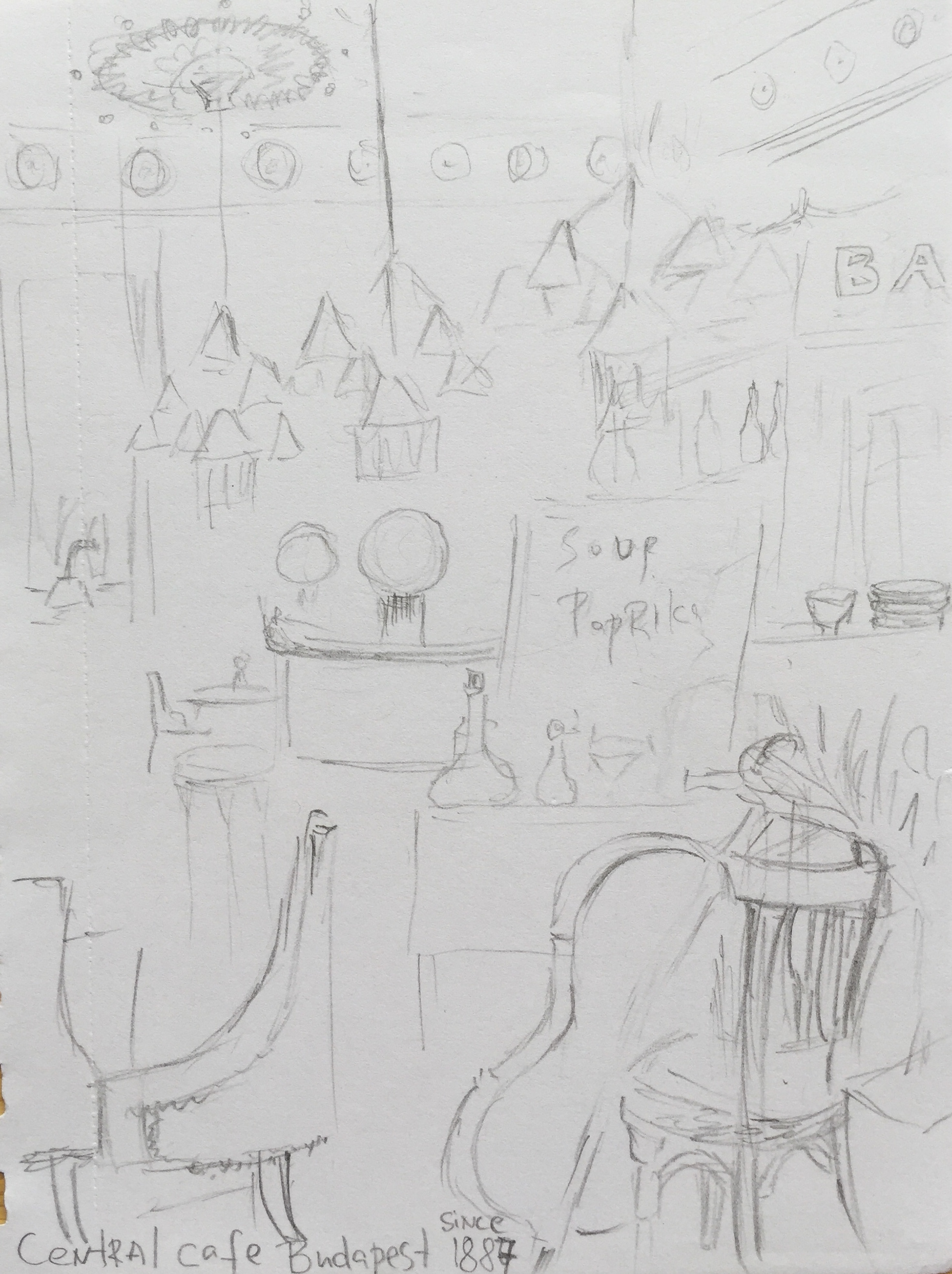 Sketch. A café in Budapest